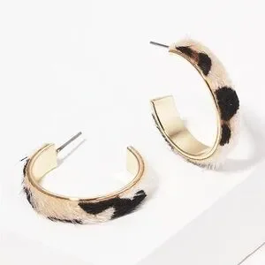 LEOPARD PRINT FAUX FUR HOOP EARRINGS (New)