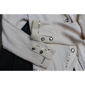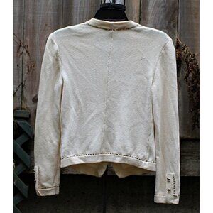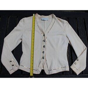 St John Evening - Women's Santana Knit Dinner Jacket in Bone with Gold Embellishment, size 4.