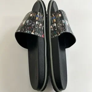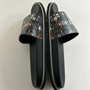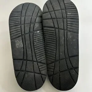 Slides are in great used condition. These are preowned and have been lightly worn. You will see some signs of wear on the bottoms and some rubbing on the sides of the shoe. Make sure to see all photos.