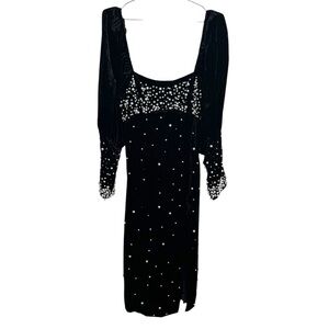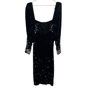 Maeve by Anthropologie Black Velvet Pearl Embellished Dress