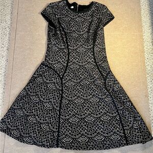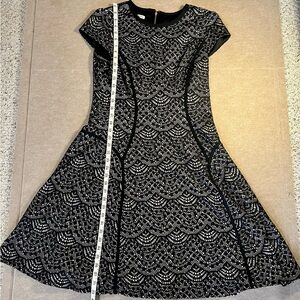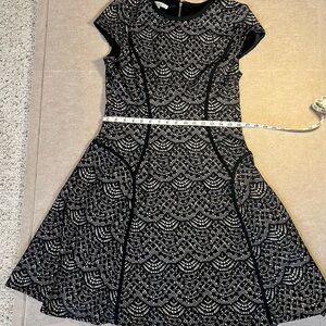 Maggy London Black and Cream Lace Midi Dress, size 12, like new
