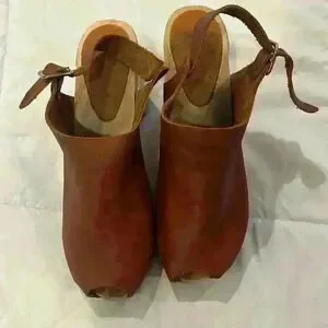 Bryr Suzie Spanish Open Toe Leather Slingback Wood Clogs EU39