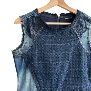 Desigual Achilles Denim and Tweed blue Patchwork Sheath Dress Size 38