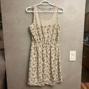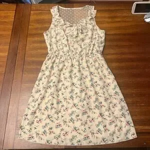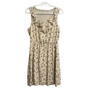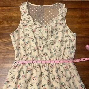 NWT Maurices Lightweight Mesh Back Ruffle Dress Medium Floral Ivory Pink