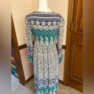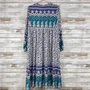 R.Vivimos | Boho Long Sleeve Floral Print Retro V Neck Tassel Midi Dress small