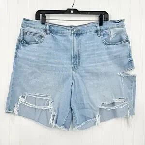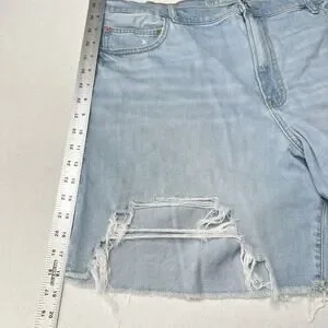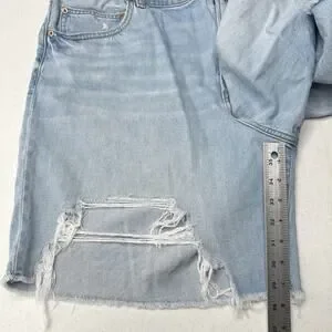 American Eagle Shorts Womens 20 90s Boyfriend Bermuda Blue Stretch Denim Light Wash Distressed Grunge
