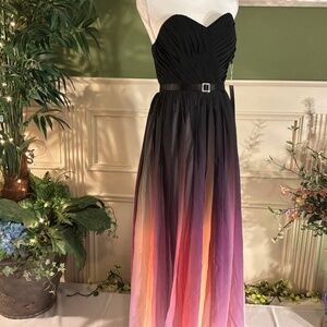 NWT - long black & multi color ombre chiffon dress with corset lace up back. Please look at pics with measurements and compare yours before ordering, my dresses do tend to run small.