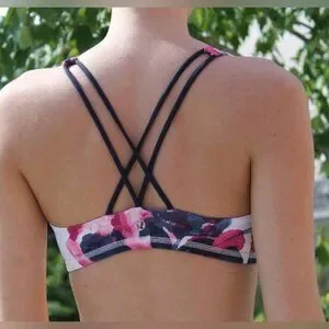 Experience comfort and style with this floral women's sports bra, featuring a blend of red, blue, and cream hues. Perfect for everyday wear.