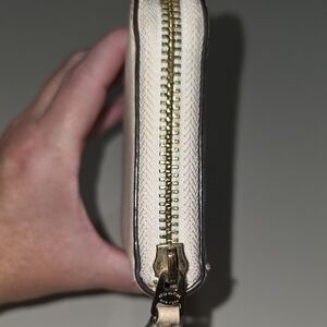 Coach Slim Zip Around Wallet Pebbled Leather Off-White Cream Clutch Minimalist