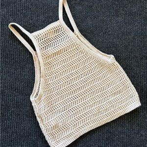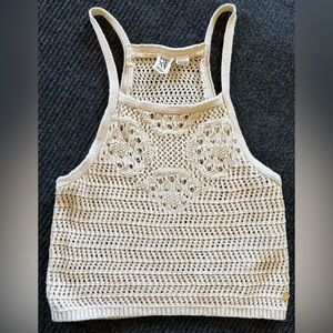 Roxy Knit Halter Neck Crop Top Women’s Small Racerback Cream Boho Tank Beach