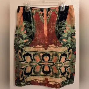 Vivienne Tam Vintage 90s Cotton Velvet Buddha Asian Midi Skirt