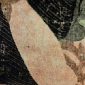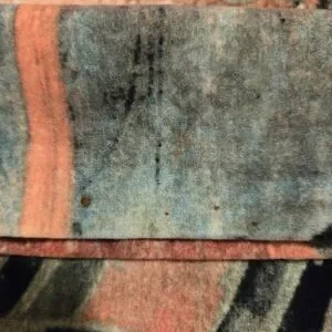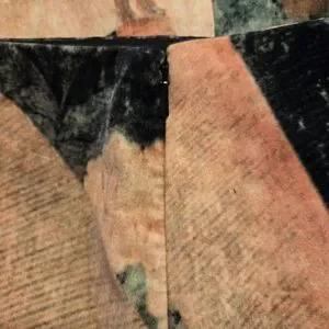 There are some places on the front that look like spots or drips. These appear to be artifacts from dye process, not stains. They are the same shades/ colors used in the fabric. The cotton velvet fabric feels soft and plush, not matted as one would expect, if they were stains. See photos