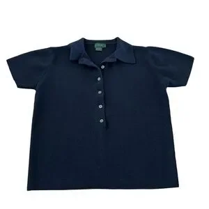 Vintage J. Crew Navy Blue Merino Wool Short Sleeve Knit Polo Top
