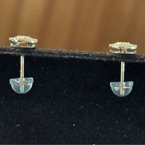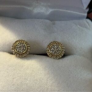 These elegant stud earrings feature a sophisticated 10kt gold with natural cluster diamonds. They are screw back to keep them on. Very beautiful.