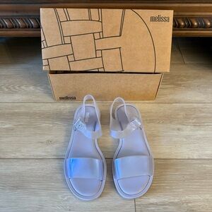 Chic Melissa sandals in light purple. Ideal for casual outings. Size 7 comes with box. Worn maybe 1-2x