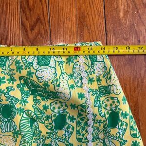 Lilly Pulitzer Womens 10 Mini Skirt Yellow Green Frog Print Rickrack Trim READ