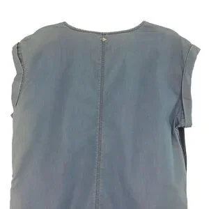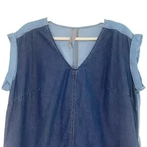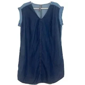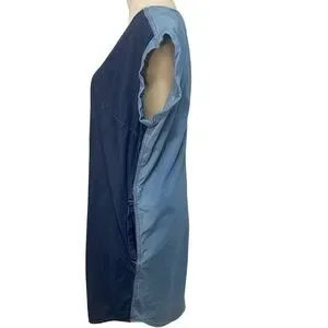 Melissa McCarthy Seven7 Colorblock Chambray Denim Shift Pocket Blue Dress Size S