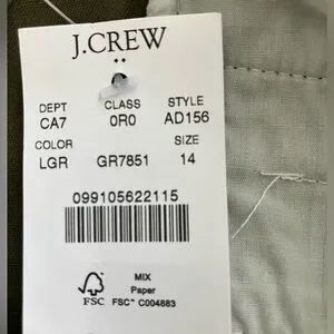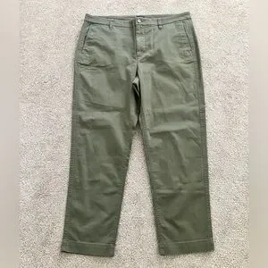 J.Crew Cotton Camp Pants Women's Green Tapered Leg Size 14 NWT