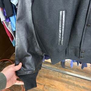 Condition: Good vintage condition. Leather shows natural wear and character consistent with its age. Some light pilling on wool surface as expected for a piece from the 90s. No major tears or holes.