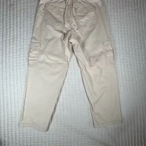 Neutral khaki beige color with cargo pockets and elastic back waistband for comfort.