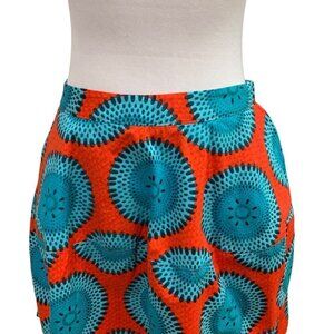 Anthropologie Yoana Baraschi Women's "Tisza" Mini Skirt in Size 4. Beautiful Circle Skirt with a bright color scheme and Geometric Print. Lined. The fabric is a Cotton Spandex Blend. Zipper Closure in the back. Great Condition, no flaws.