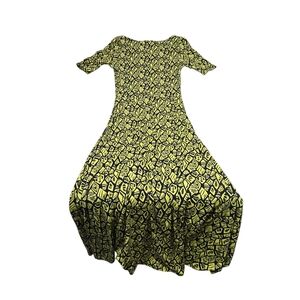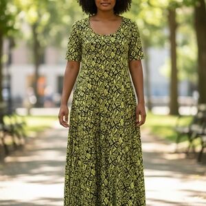 Step out in style with this elegant black and yellow patterned maxi dress. Perfect for any occasion, it offers a blend of comfort and sophistication.