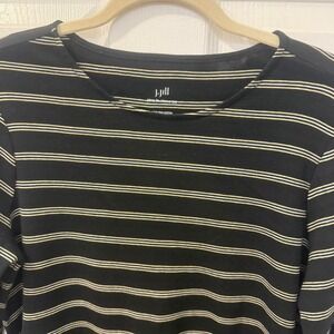 J. Jill Pima Cotton Tie Sleeve Tee Womens Medium Black Striped Blouse Top Casual