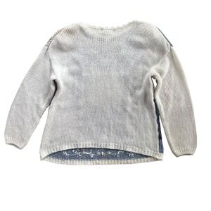 Spice of Life Vintage Med Blue Beige Patchwork Granny Square Sweater Cottagecore