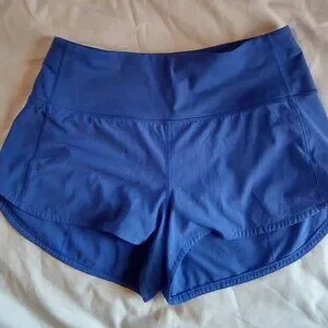 The LULULEMON Speedup Highrise Women's Shorts in size 8 are designed for active women who engage in running and jogging. These athletic shorts feature a solid blue color, a drawstring closure, and a blended fabric construction for comfort and durability. With a compression area targeted at the waist, these shorts provide a tailored fit for the summer and spring seasons. Perfect for sports-themed occasions, these machine washable shorts from the trusted brand Lululemon are a stylish and functional addition to any active wardrobe.