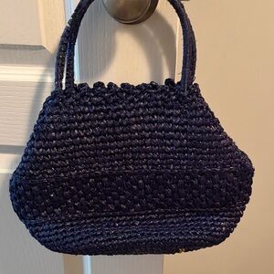 Vintage navy blue woven handbag is perfect for any occasion. Made in Japan.