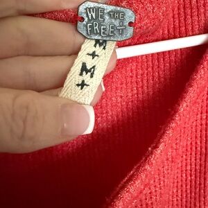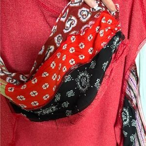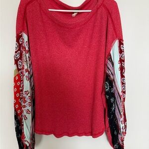 💋 We The Free Red Blouse with Patterned Sleeves 030