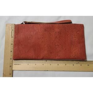 Cork Wristlet Clutch Purse Womens Size Small Brown Orange Vegan Eco-Friendly EUC