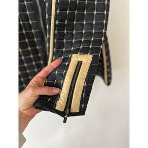 Oleg Cassini Jacket Women’s M 100% Silk Reversible Quilted Lightweight Tan Black