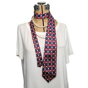 Great vintage Robert Talbott 100% silk hand sewn geometric red white & blue neck tie!