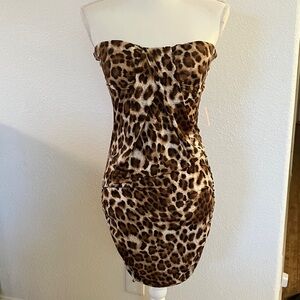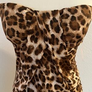 Vintage Chic strapless Brown/beige leopard animal print dress with bold animal print. Ideal for stylish evenings.