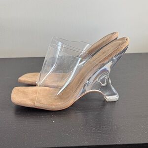Stylish clear mules with a beige footbed. Perfect for versatile wear. Modern and comfortable design.
