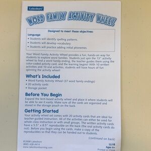 LAKESHORE WORD FAMILY ACTIVITY WHEEL 20 ACTIVITY CARDS SPELLING PATTERNS AGES 6+
