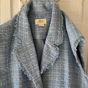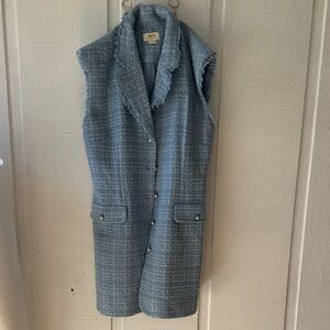 Anthropologie Baby Blue Sleeveless Tweed Dress Coat