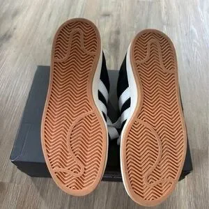 Classic Adidas Campus sneakers. Black suede with white stripes. Comfortable and stylish. Men’s size 8.5. Bought for my daughter but they are too big. Didn’t realize we were purchasing a men’s size. She wore these for about 30 minutes in the house.