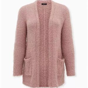 Torrid Fuzzy Yarn Cardigan Open Front Sweater Dusty Pink 4X