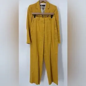 ZARA Women’s Yellow Linen Blazer Pant Set
