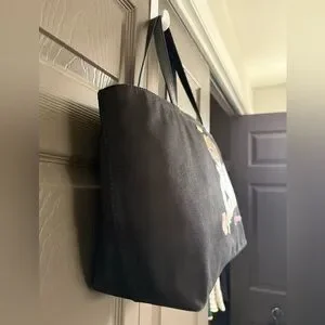 Stylish black tote bag featuring a playful cheetah design. Perfect for adding a touch of fun to your outfit.