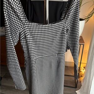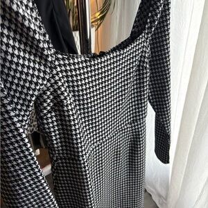 Mi Ami Black and White Checkered Long Sleeve Dress
