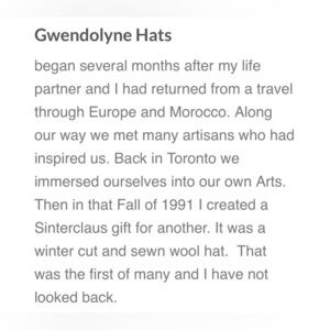 Gwendolyne Hand made hat in Toronto