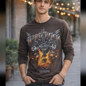Hard Rock Cafe Dark Brown Guitar Graphic Long Sleeve Tee