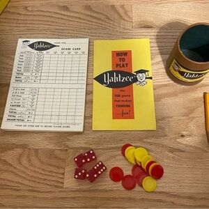 Vintage Yahtzee 1956 Dice Board Game Blue Yellow