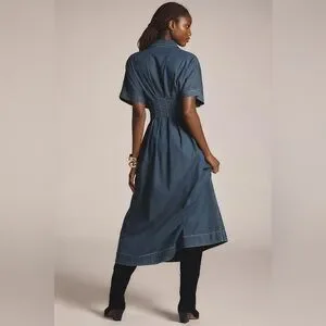 Chic blue midi dress by Anthropologie. Features button-down front and short sleeves. Perfect for casual elegance.