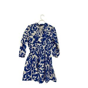 Zara Women Tile Dress S Blue White Sicilian Button Up Linen Viscose Blend NWT
