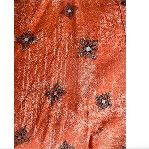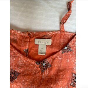 Lightweight and easy-to-wear cotton cami from Hinge in a warm burnt orange shade with delicate geometric floral print.