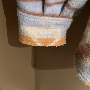 It is a lovely jacket with vibrant colors and an eye catching design. Oversized, can also fit a size Large or X-Large.